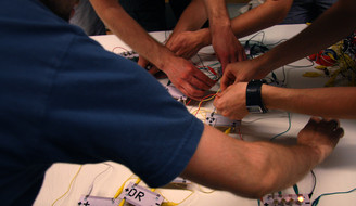 Sebastian Oschatz hed a three day lectura about Computer History at HfG Schwäbisch Gmünd. As a practical exercise a 4bit adding machine was built.